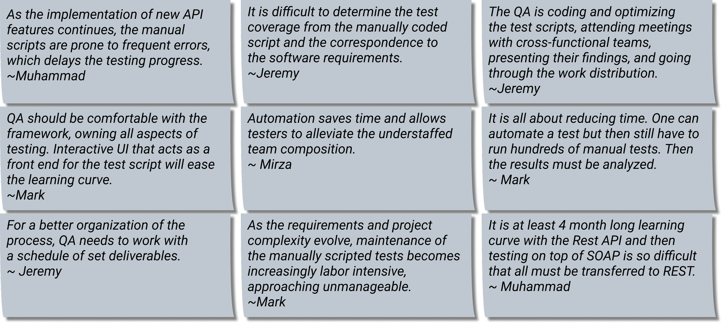 Team Dynamics - pain points related to the interaction between the QA with development and management departments.