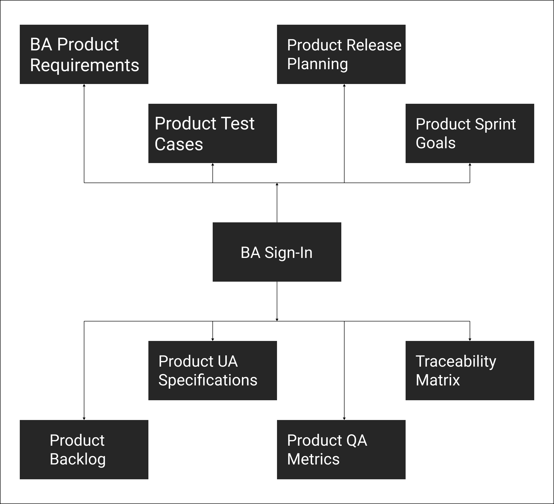 User Flow - we produced these artifacts to determine the minimal viable product flow for the BA and QA user type.
